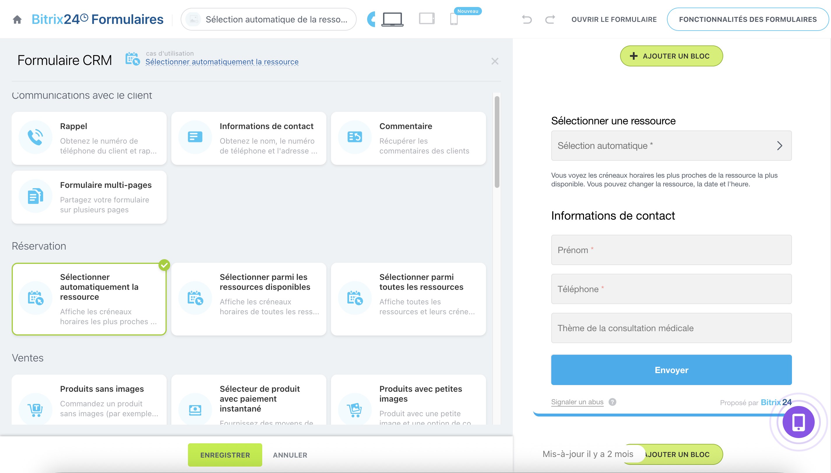 Créez un formulaire CRM qui permet à vos clients de prendre facilement rendez-vous. Ils verront les créneaux horaires disponibles et pourront réserver en quelques clics, sans l'aide d'un professionnel.