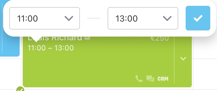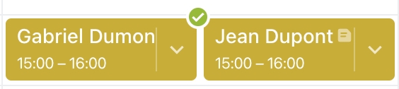 Si plusieurs clients réservent le même créneau horaire, celui-ci est mis en évidence en jaune foncé. La surréservation permet d'assurer une utilisation efficace de vos ressources, même si l'un des clients annule sa visite.