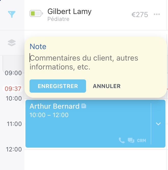 Cliquez sur l'icône de note pour ajouter des détails supplémentaires tels que des préférences ou des demandes spéciales.