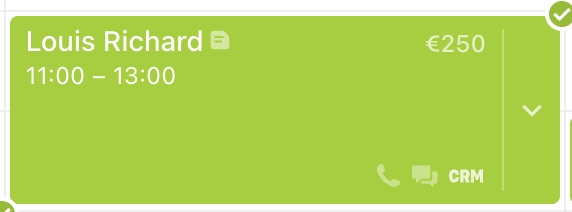 Une fois que le client confirme sa réservation, celle-ci devient verte avec une coche. Dans les transactions, les activités de réservation apparaîtront également en vert. Les réservations effectuées moins de 24 heures avant la visite sont automatiquement confirmées et affichées en vert.