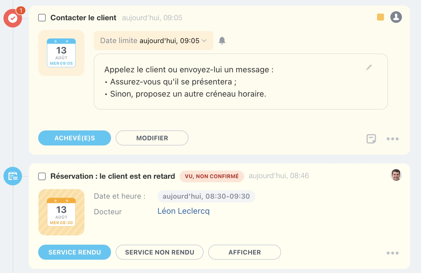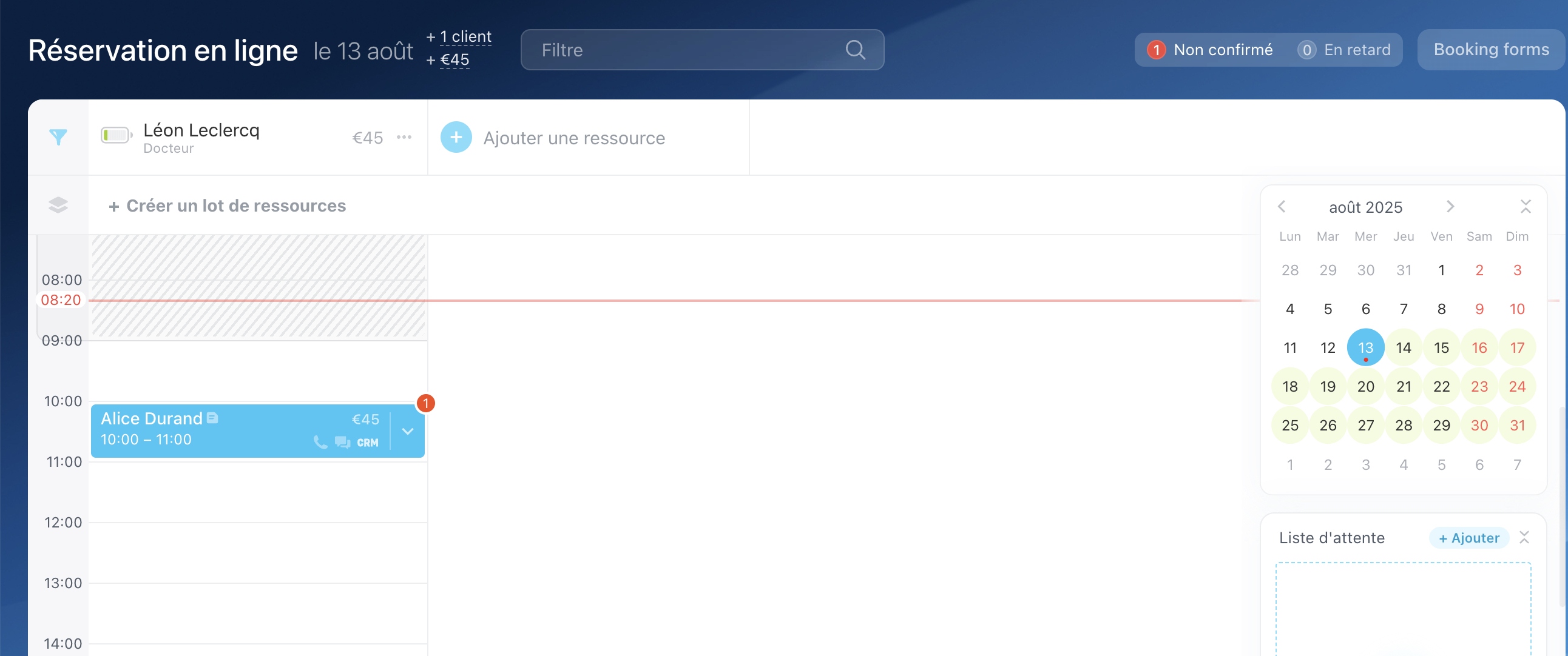 Si le client ne confirme pas la réservation via le lien, un compteur rouge apparaît sur le tableau de planification.