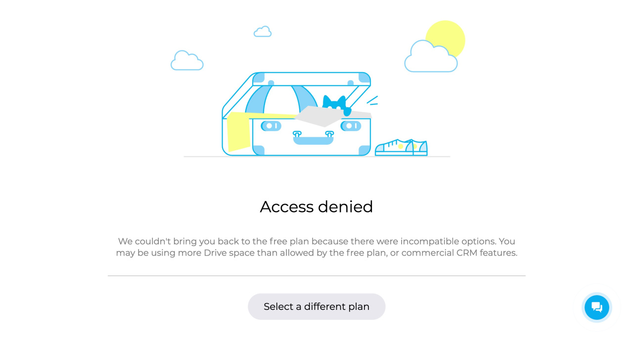 Si vous ne désactivez pas les fonctions incompatibles avec votre plan pendant la période de 15 jours à partir de la section Éléments à désactiver ou supprimer manuellement, alors l'utilisation de Bitrix24 sera suspendue. Vous ne pourrez pas travailler dans votre Bitrix24 tant que vous n'aurez pas passé à un plan adapté.