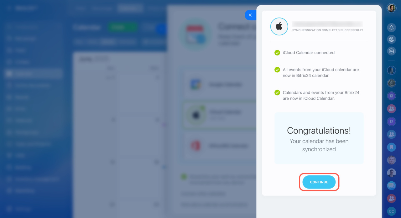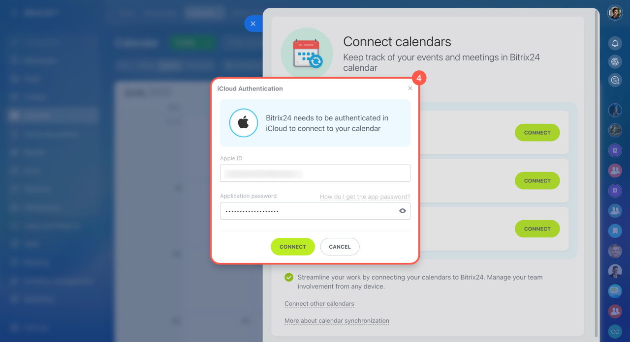 Configurez la synchronisation du calendrier iCloud avec votre Bitrix24.