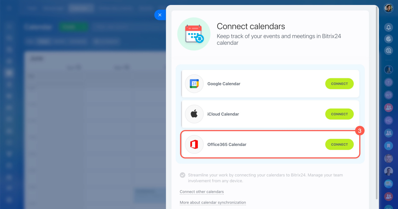 Synchronisez le calendrier Office365 avec votre Bitrix24.