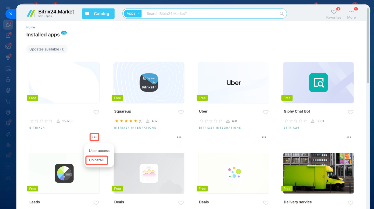 - Par défaut, les administrateurs Bitrix24 peuvent installer des applications. Dans les paramètres Bitrix24, vous pouvez configurer les droits afin que n'importe quel employé puisse installer des applications.