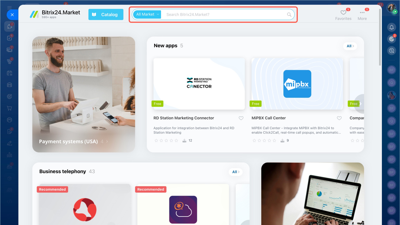 Market propose plus de 500 solutions qui optimisent le fonctionnement des outils Bitrix24.