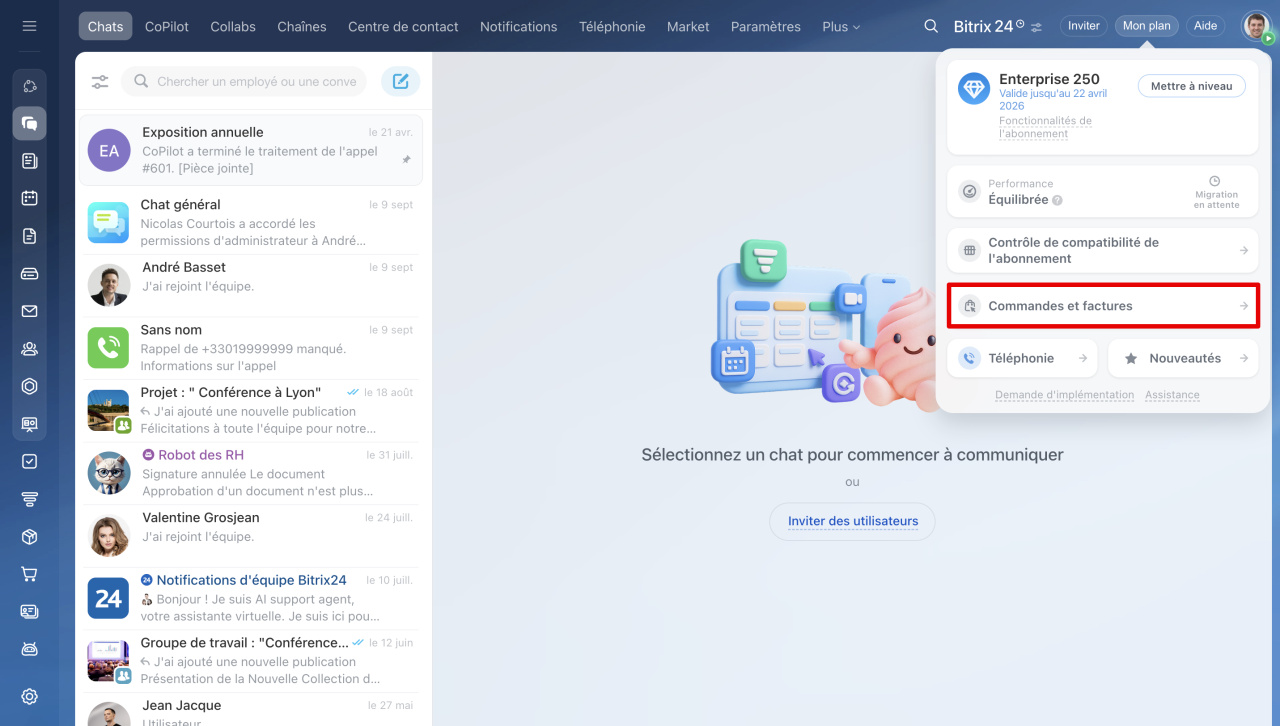Si vous avez acheté un abonnement commercial auprès d’un partenaire Bitrix24 (revendeur Bitrix24), demandez votre facture directement auprès de celui-ci.