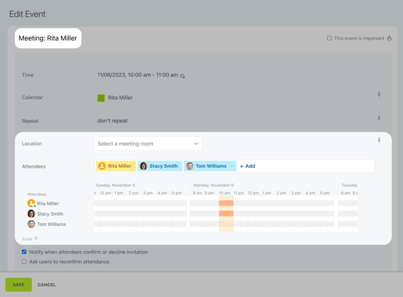 Lorsque vous prenez rendez-vous avec une personne d'une autre entreprise, il est difficile de coordonner l’horaire : chacun a son propre calendrier et son emploi du temps. Bitrix24 dispose d'un outil spécial qui simplifie la planification.