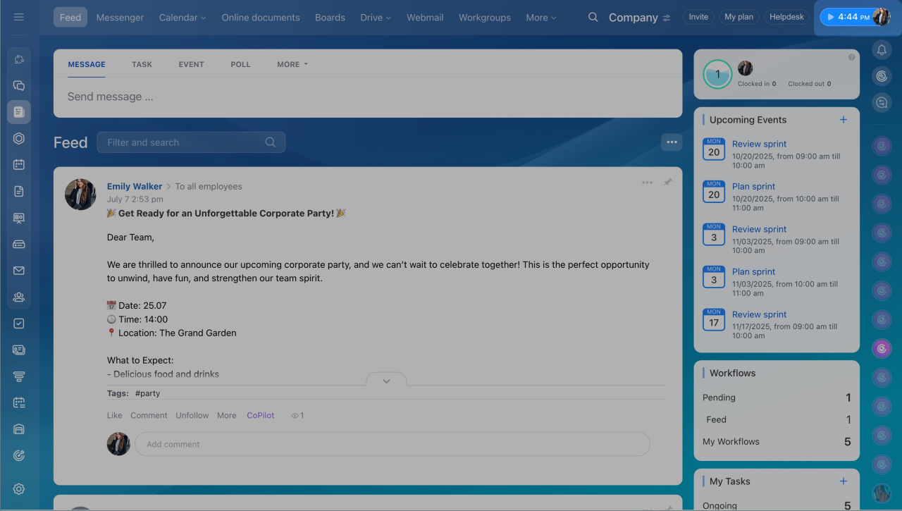 Gérez le temps de travail - organisez votre emploi du temps dans Bitrix24. Créez des rendez-vous et des tâches, résolvez rapidement les problèmes actuels.