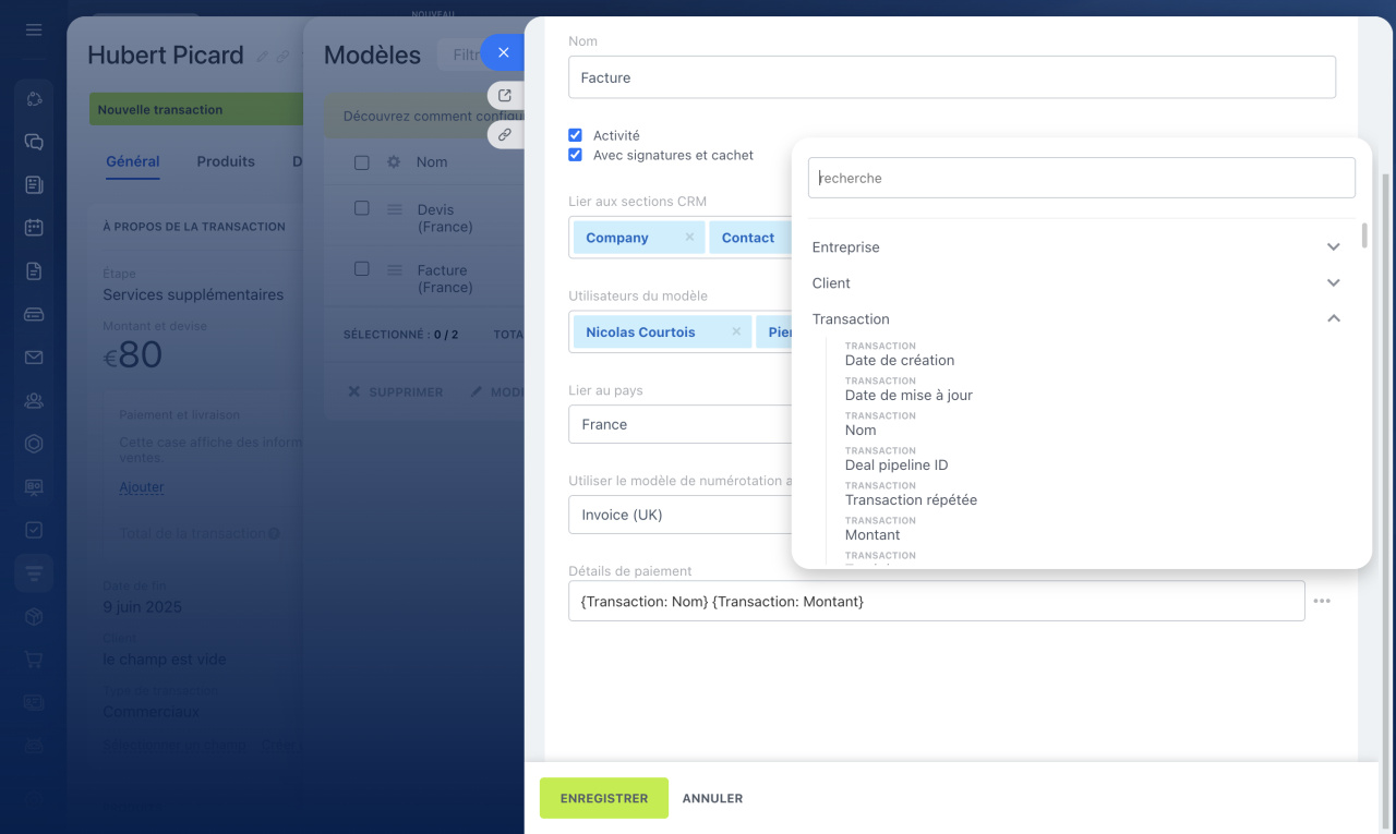 Vous pouvez maintenant utiliser ce modèle pour créer une facture à partir d'un formulaire de transaction.