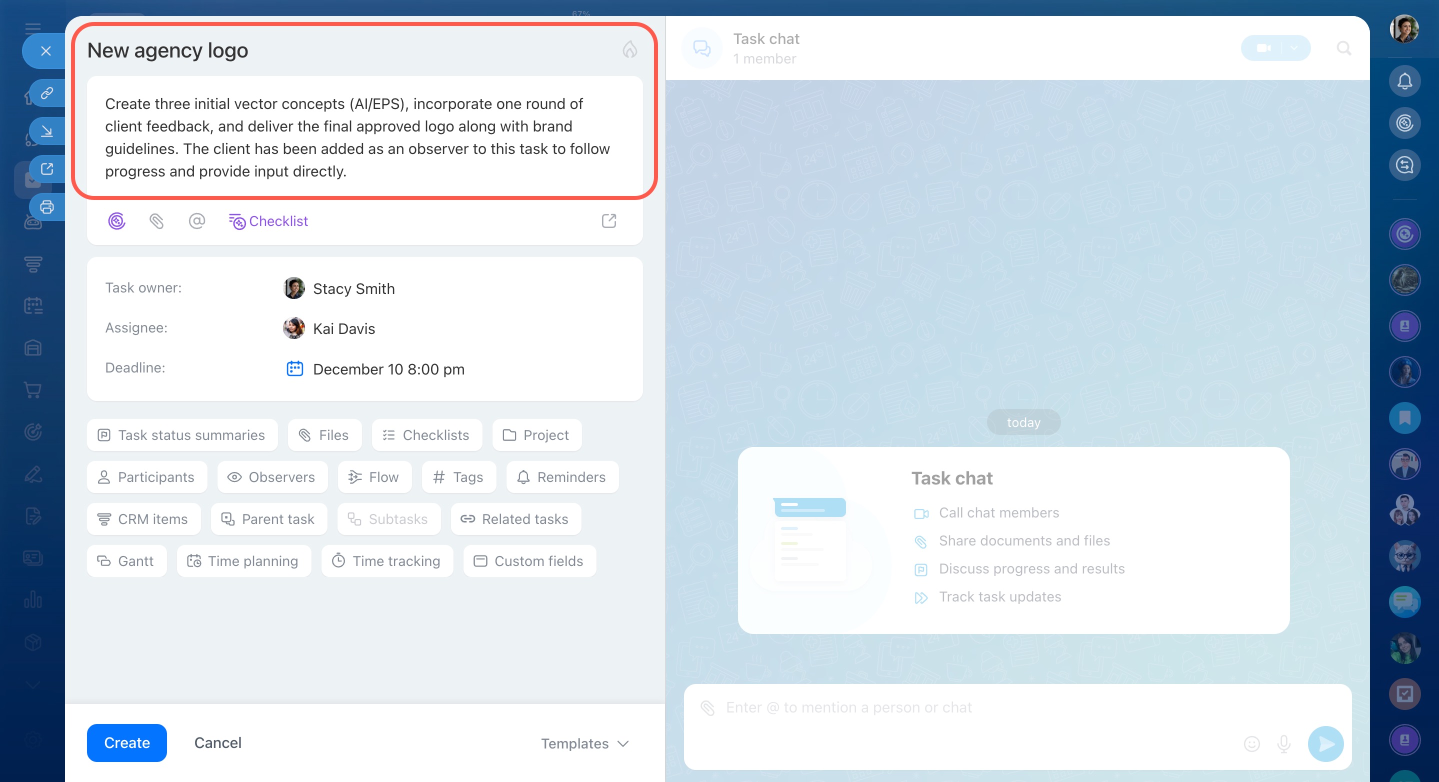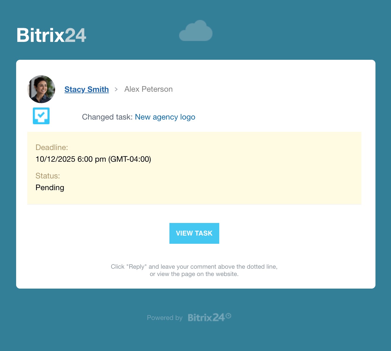 L'utilisateur externe sera en mesure de suivre chaque étape de la tâche et de laisser des messages dans les commentaires. Chaque fois que vous modifiez une tâche, il recevra une notification par e-mail.