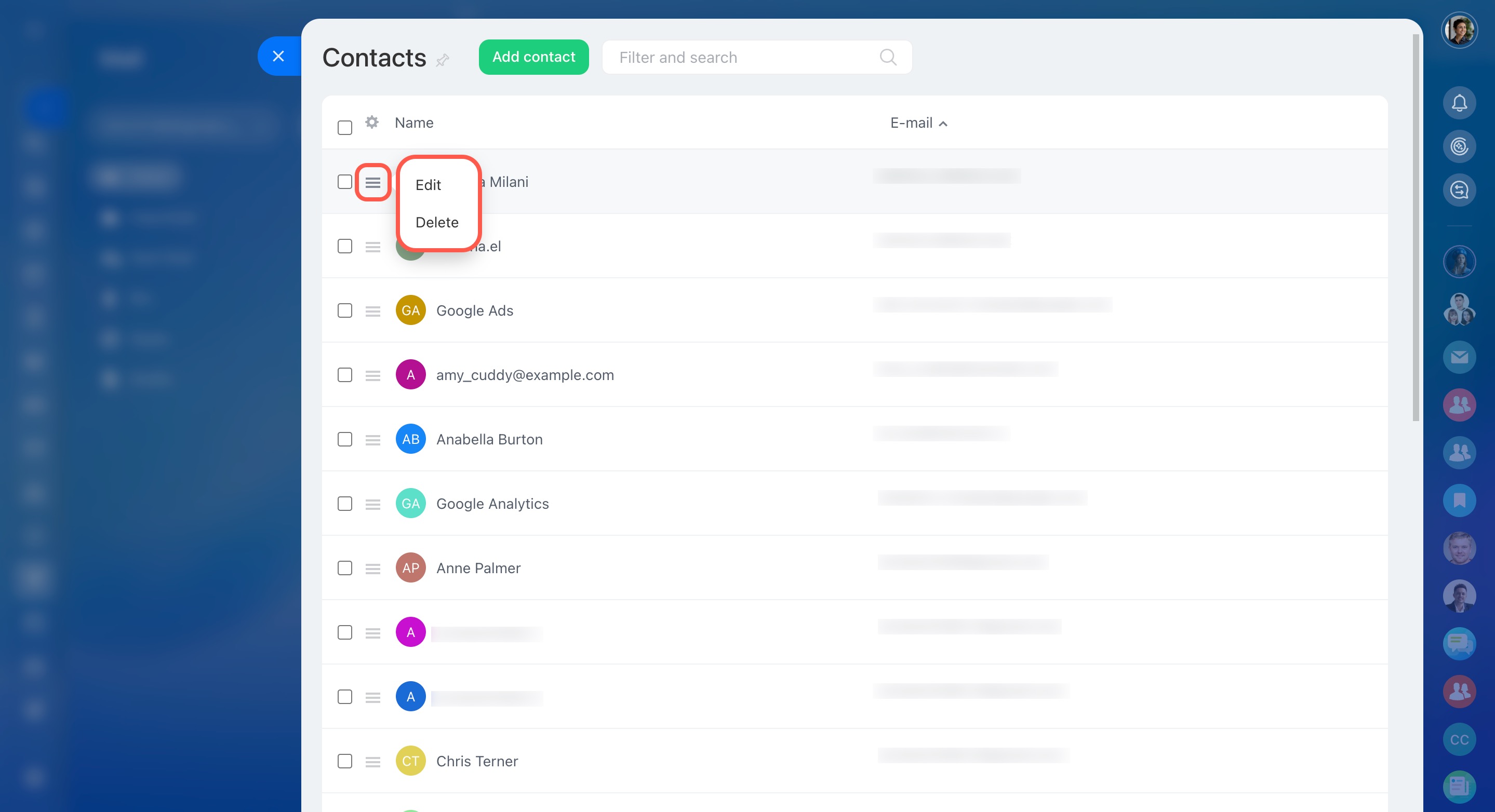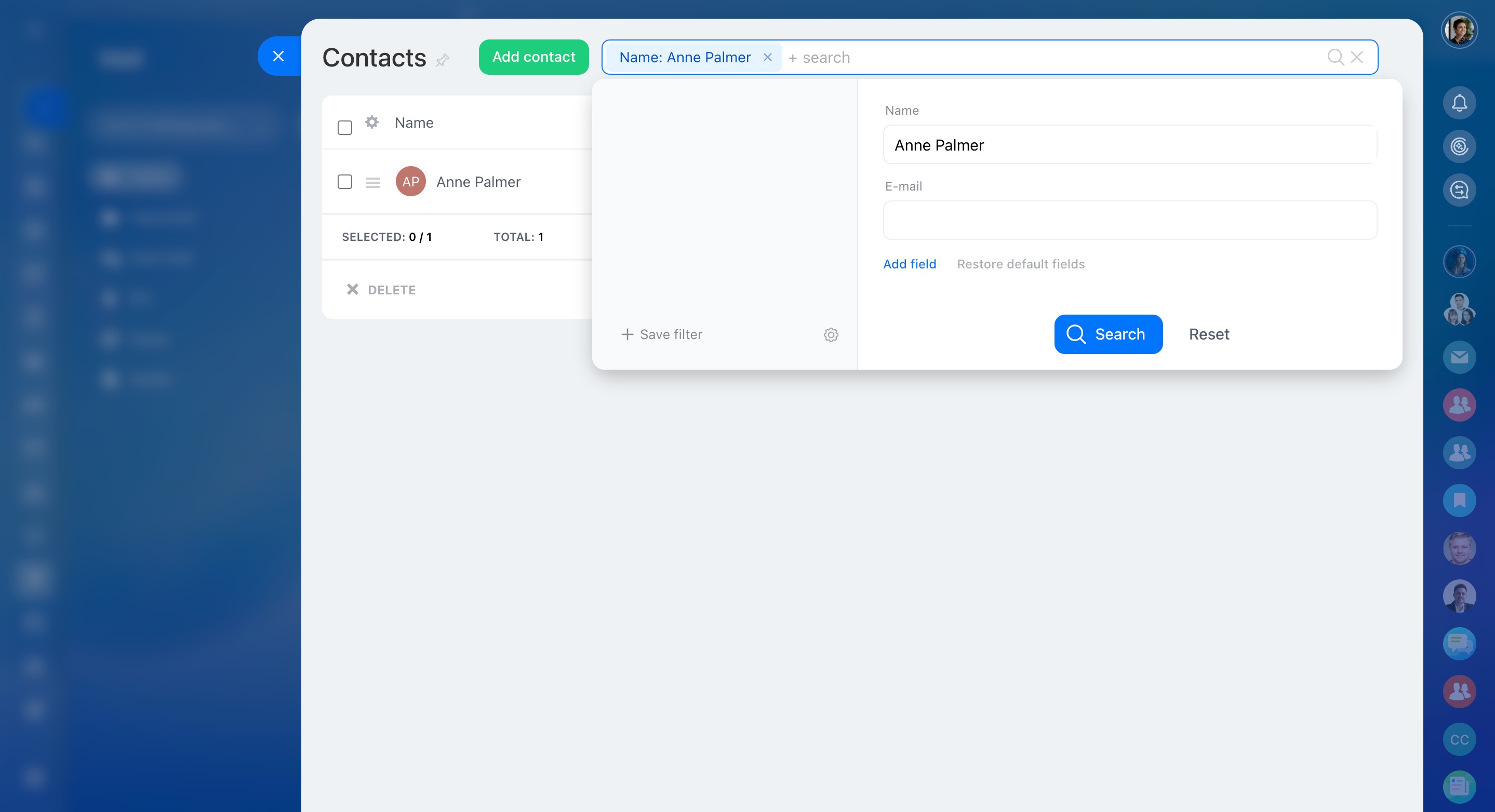 Recherchez des contacts à l'aide du filtre et de la barre de recherche.