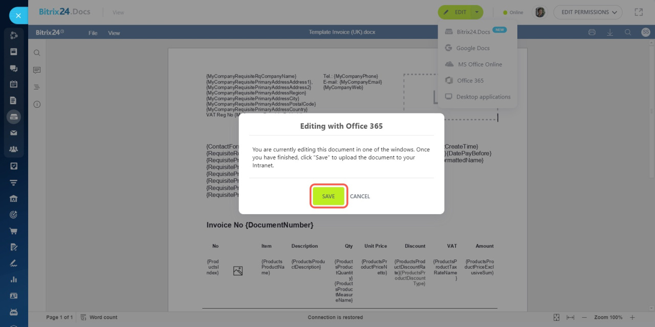 N'oubliez pas d'enregistrer le fichier dans Bitrix24.