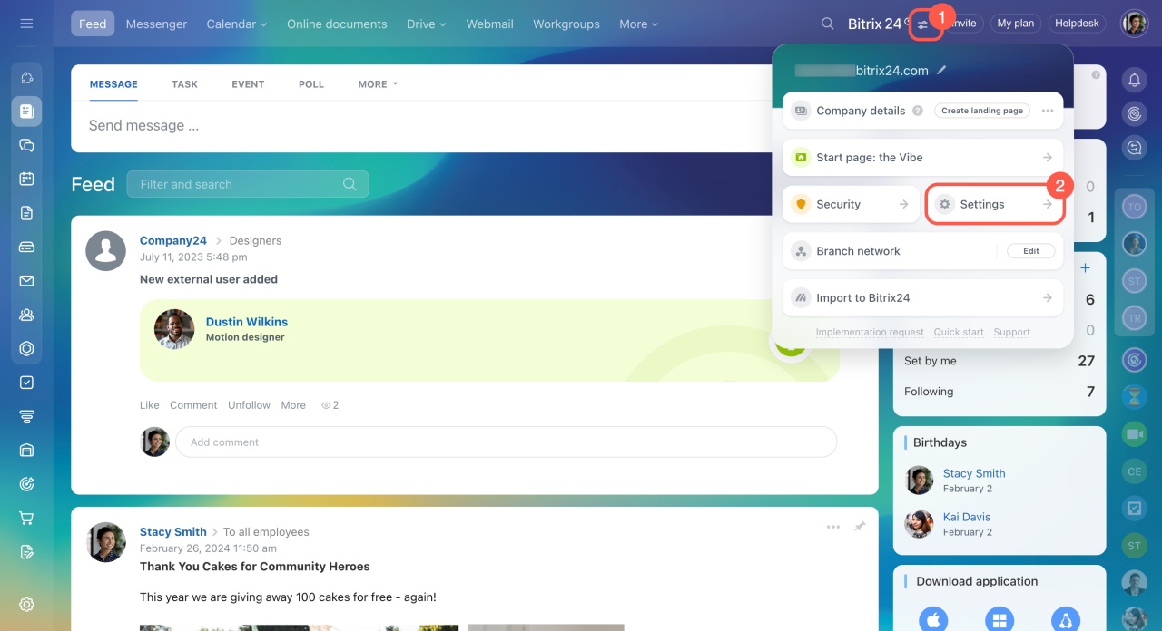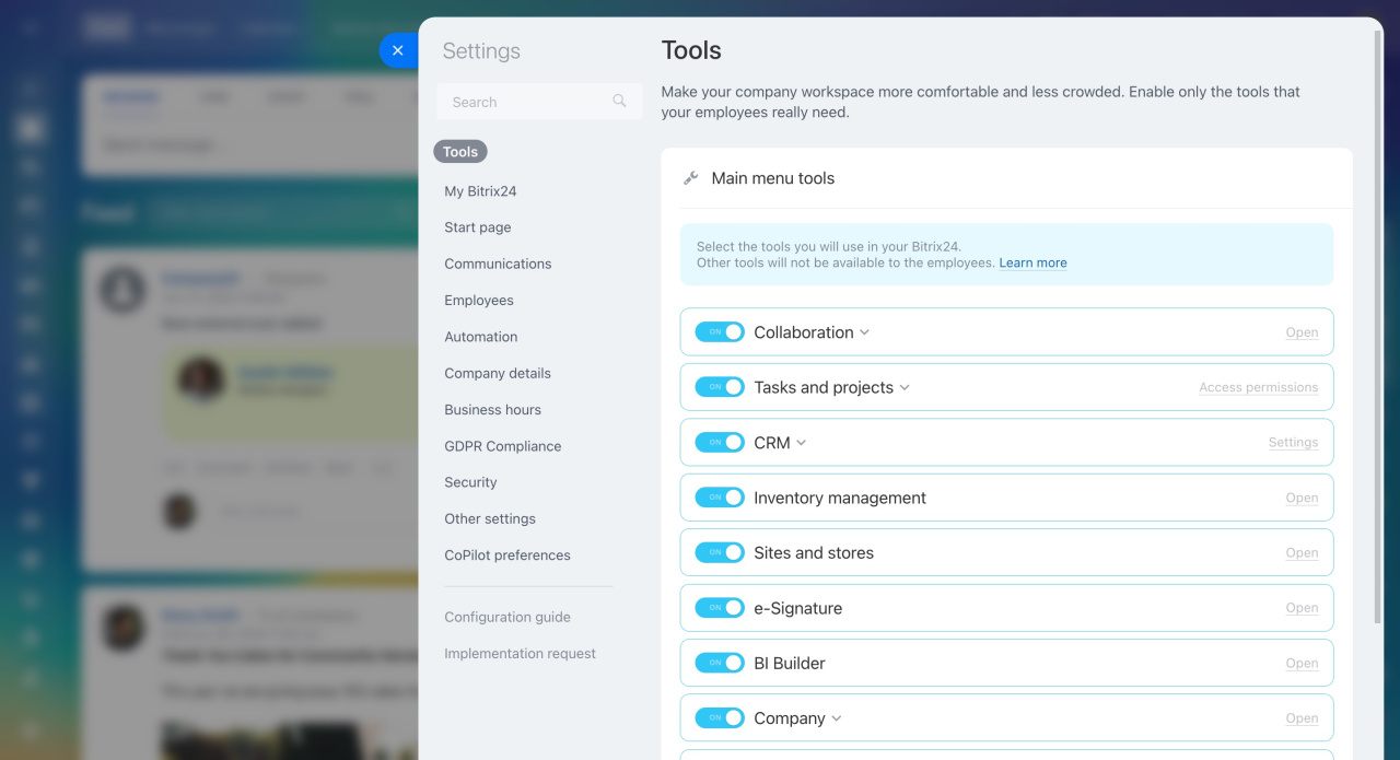 Paramètres Bitrix24 : nouvelle interface et section unique