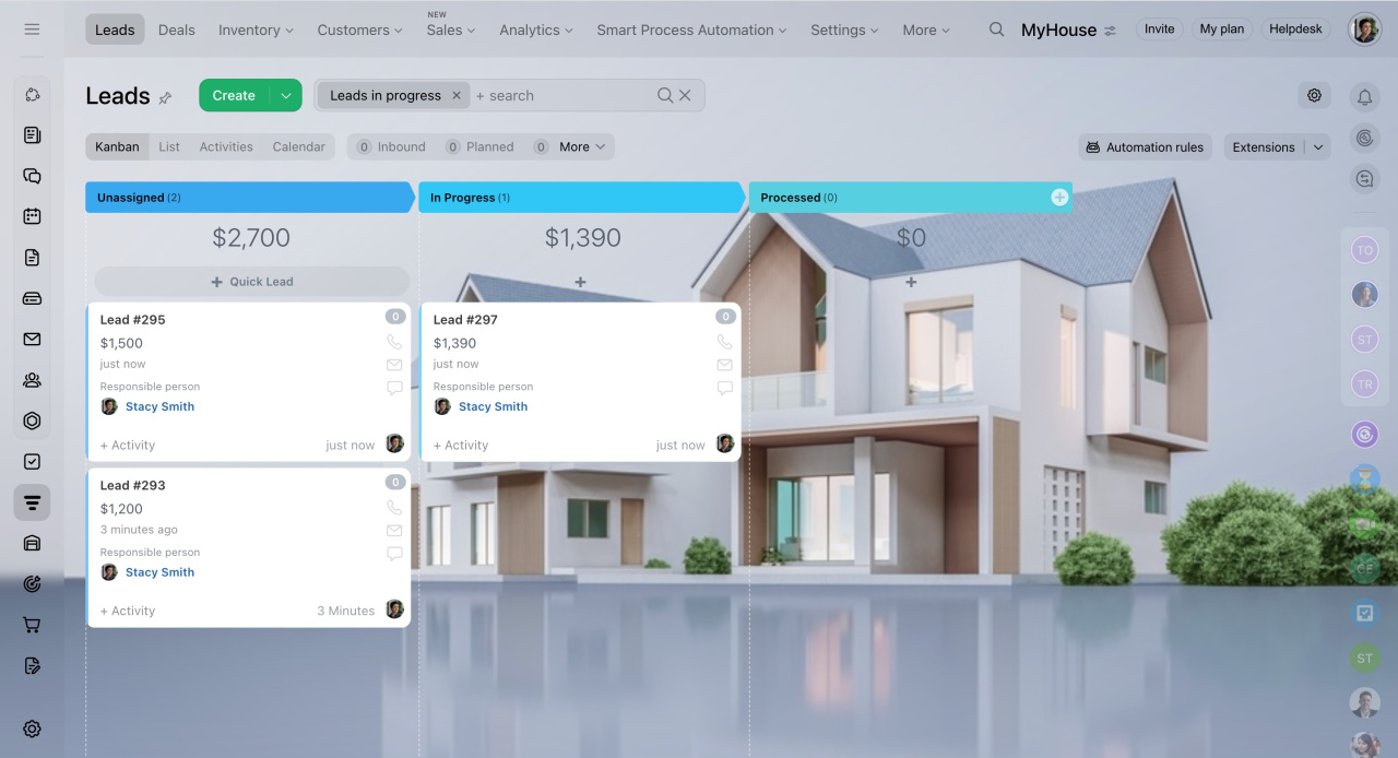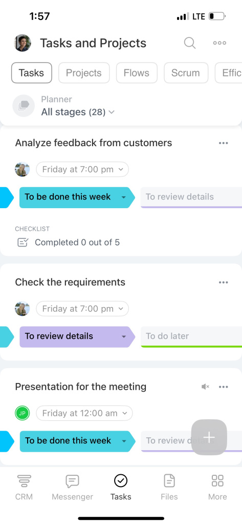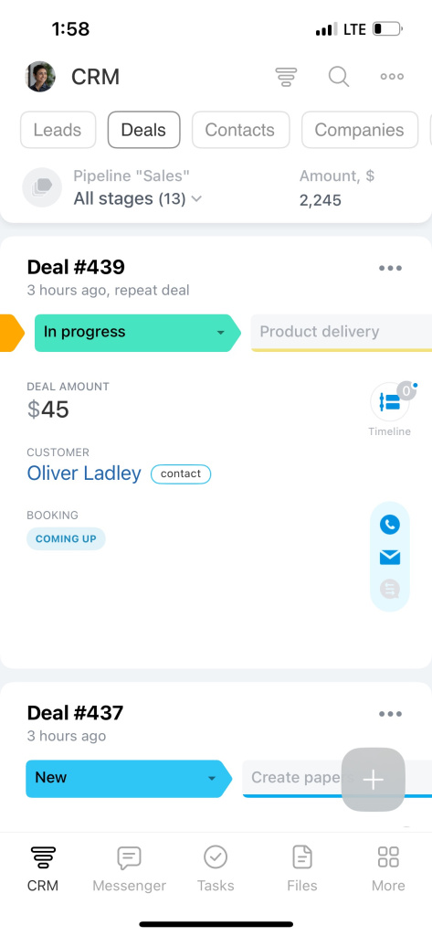 Application mobile. Vous serez toujours en contact avec vos collègues et clients. Discutez, recevez des appels, définissez des tâches et travaillez dans le CRM.