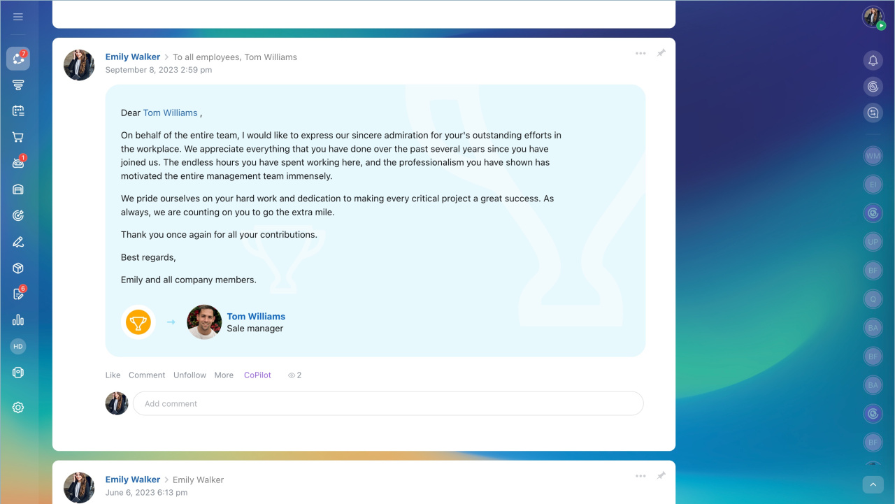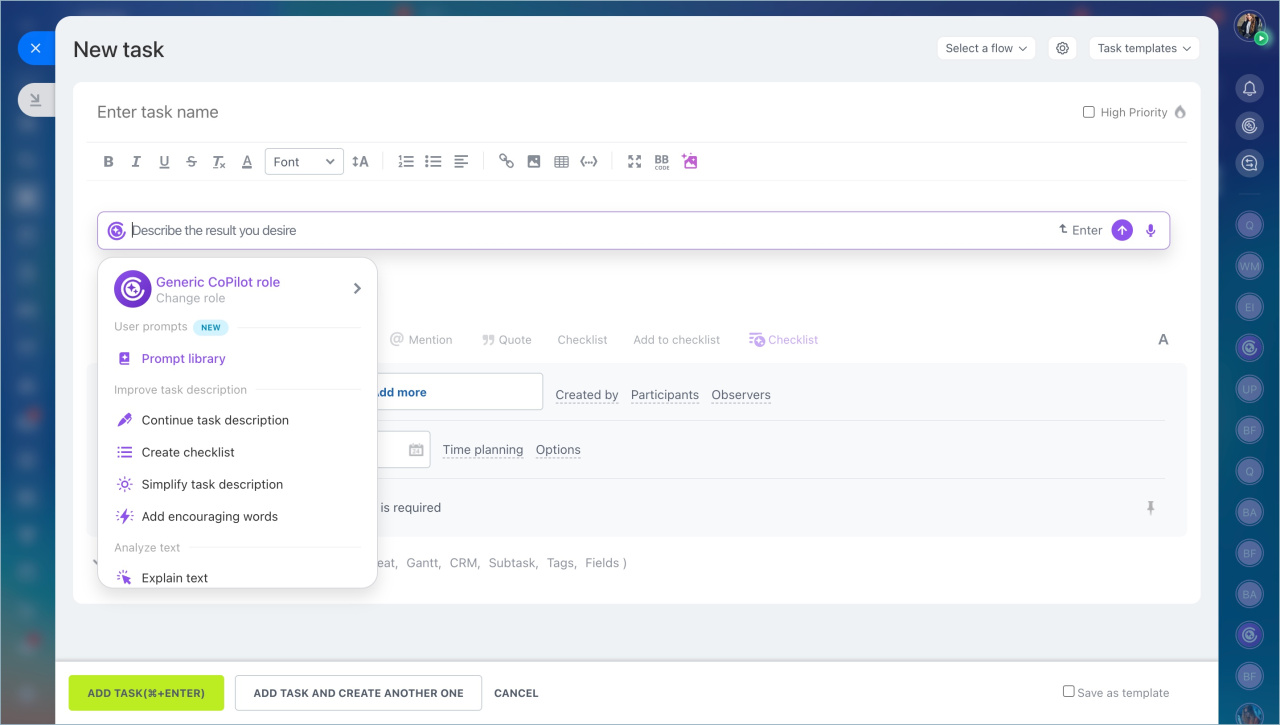 CoPilot dans Bitrix24 est un assistant IA pour le travail quotidien.