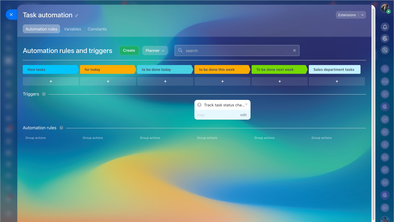- Vous gagnez du temps. À l'aide de règles d'automatisation et de déclencheurs, vous pouvez automatiser les processus standards : traitement des demandes, approbation des contrats.