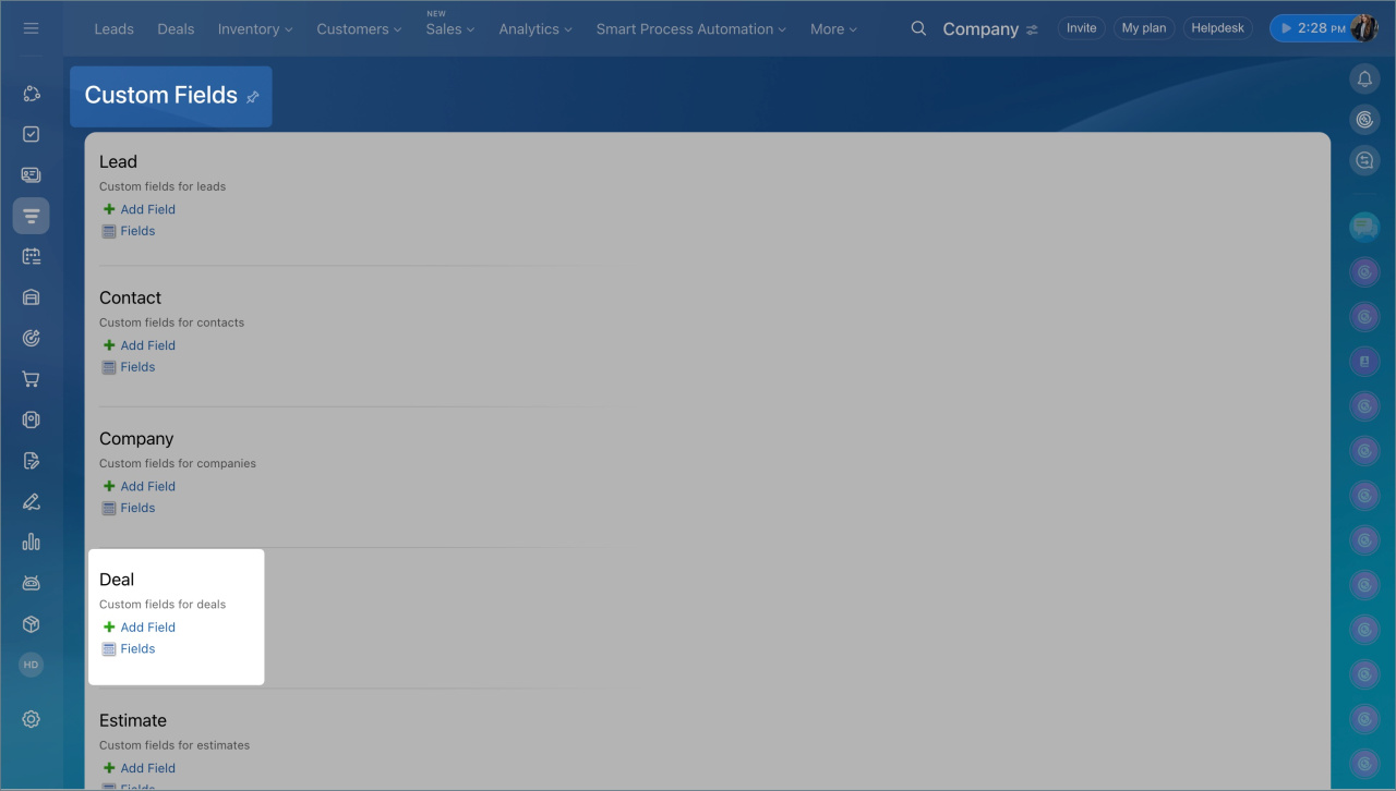 Cet article traite des champs personnalisés dans les prospects, transactions, contacts, entreprises et devis.