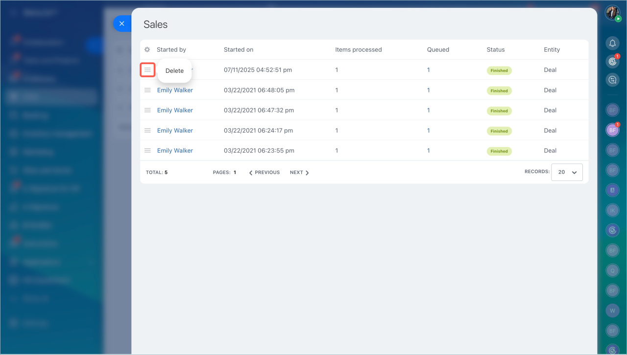 1. Sélectionnez un ou plusieurs éléments CRM.