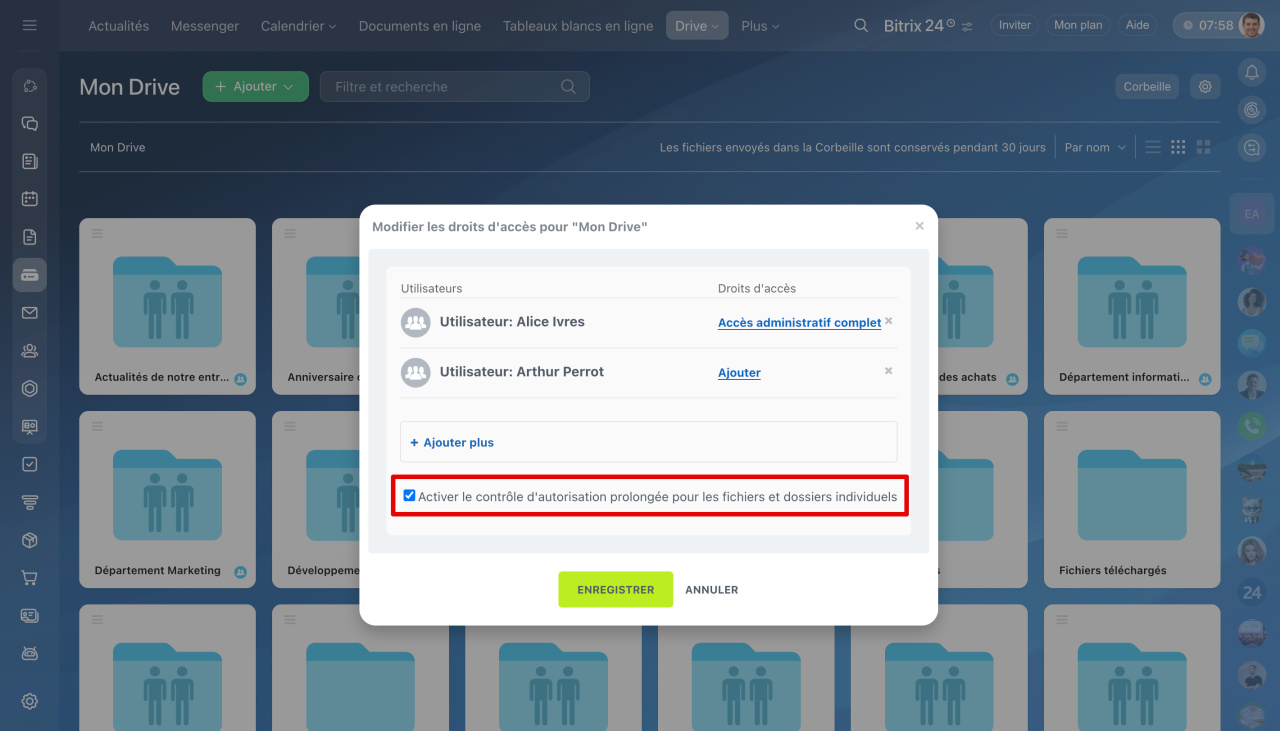 Pour qu'un employé accède à des dossiers ou fichiers précis du Drive, configurez les droits d'accès avancés. S'ils ne sont pas définis, l'accès peut rester limité.