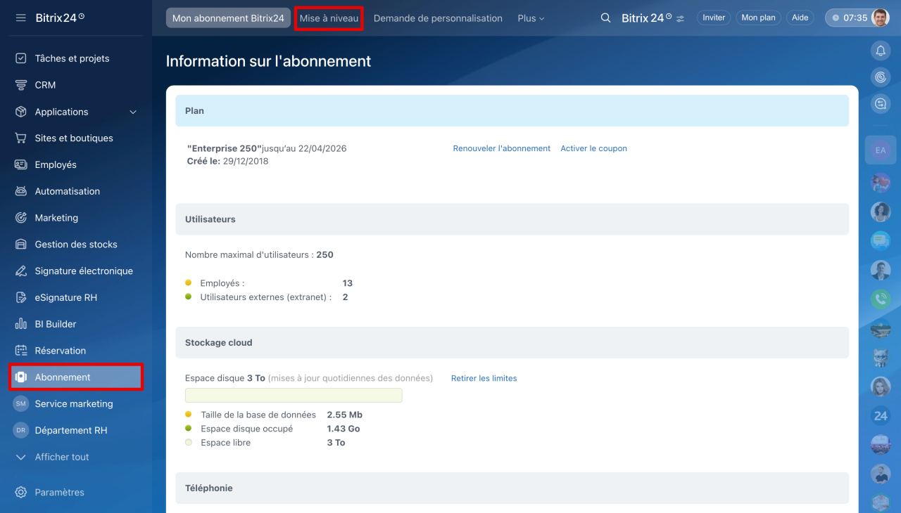 Passez à un plan supérieur. Si l'espace est insuffisant, accédez à la section Abonnement et cliquez sur Mise à niveau. Choisissez une option offrant un plus grand volume de stockage.