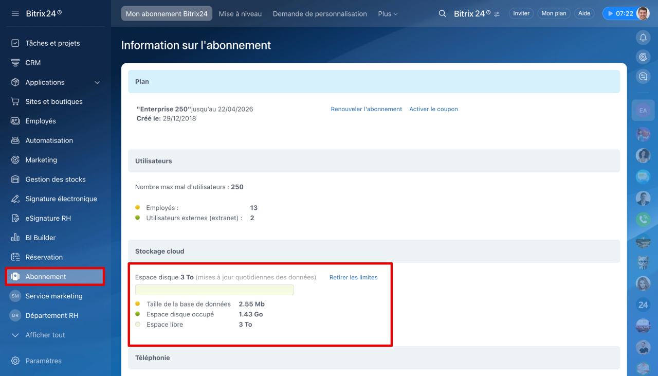 Problème. Vous avez supprimé des fichiers du Drive Bitrix24, mais le stockage reste saturé.
