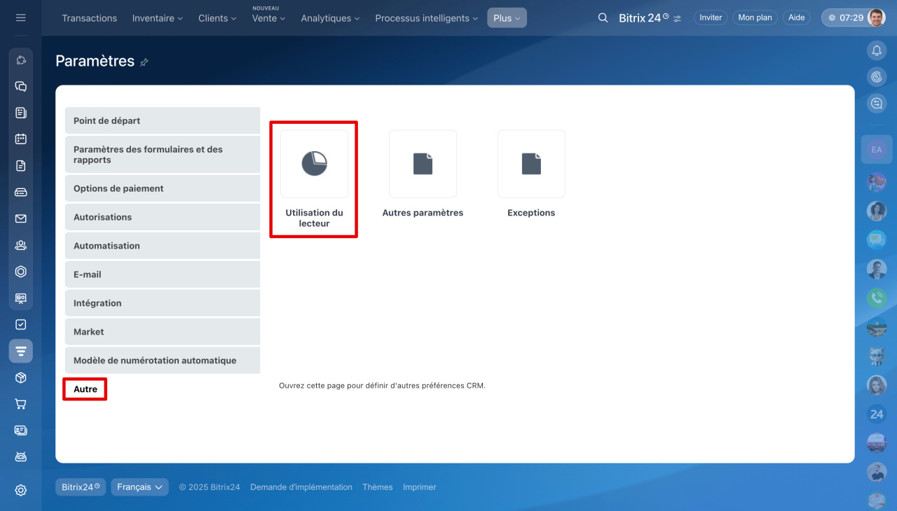 Libérez de l'espace dans le CRM. Vérifiez quelles données occupent de l'espace - accédez à CRM - Plus - Paramètres - Paramètres CRM - Autre - Utilisation du lecteur. Supprimez les éléments obsolètes, fichiers ou autres données.