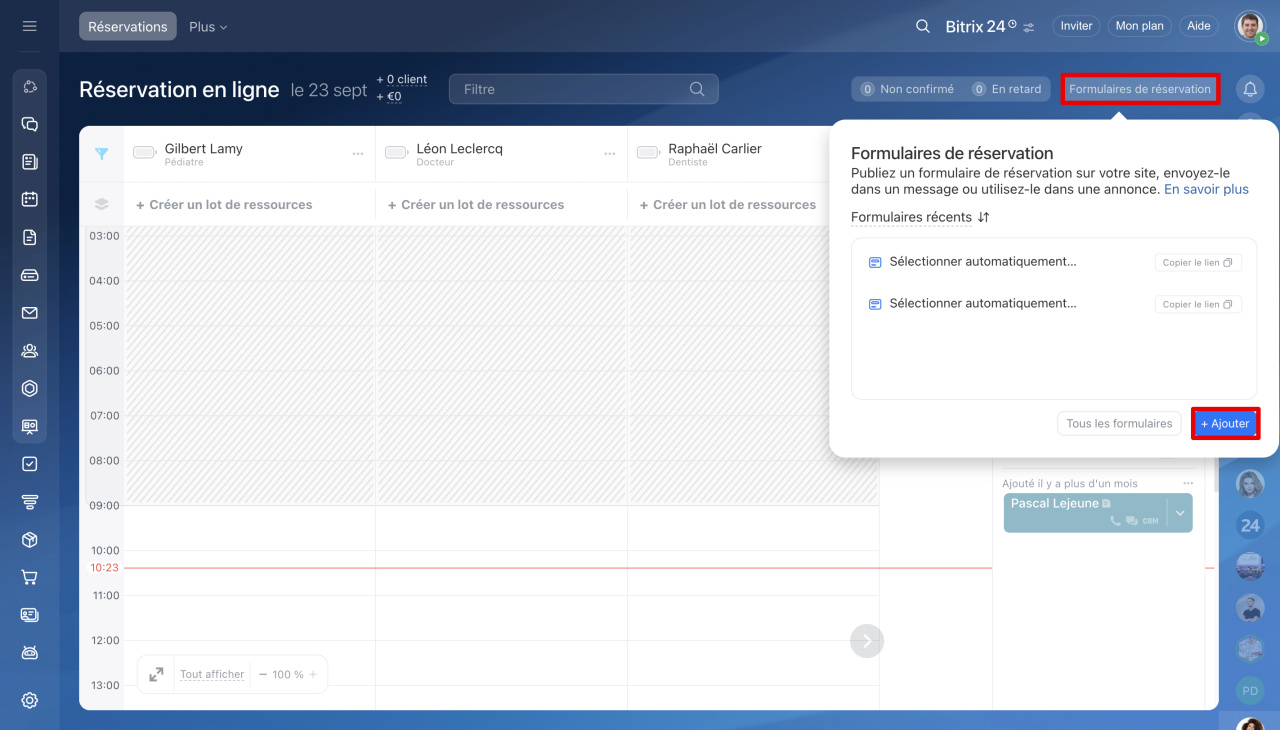 - Bitrix24 permet de configurer un formulaire de réservation en ligne pour une autonomie client.