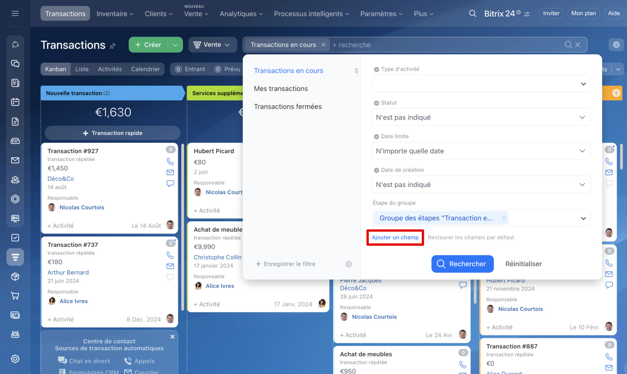 1. Accédez à la section CRM - Transactions.