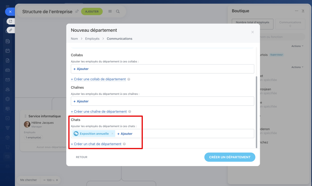 Ajouter un département à une discussion ou une chaîne dans Bitrix24