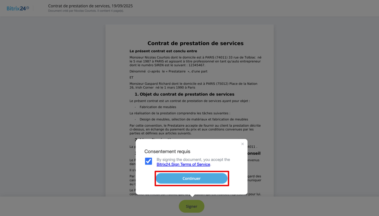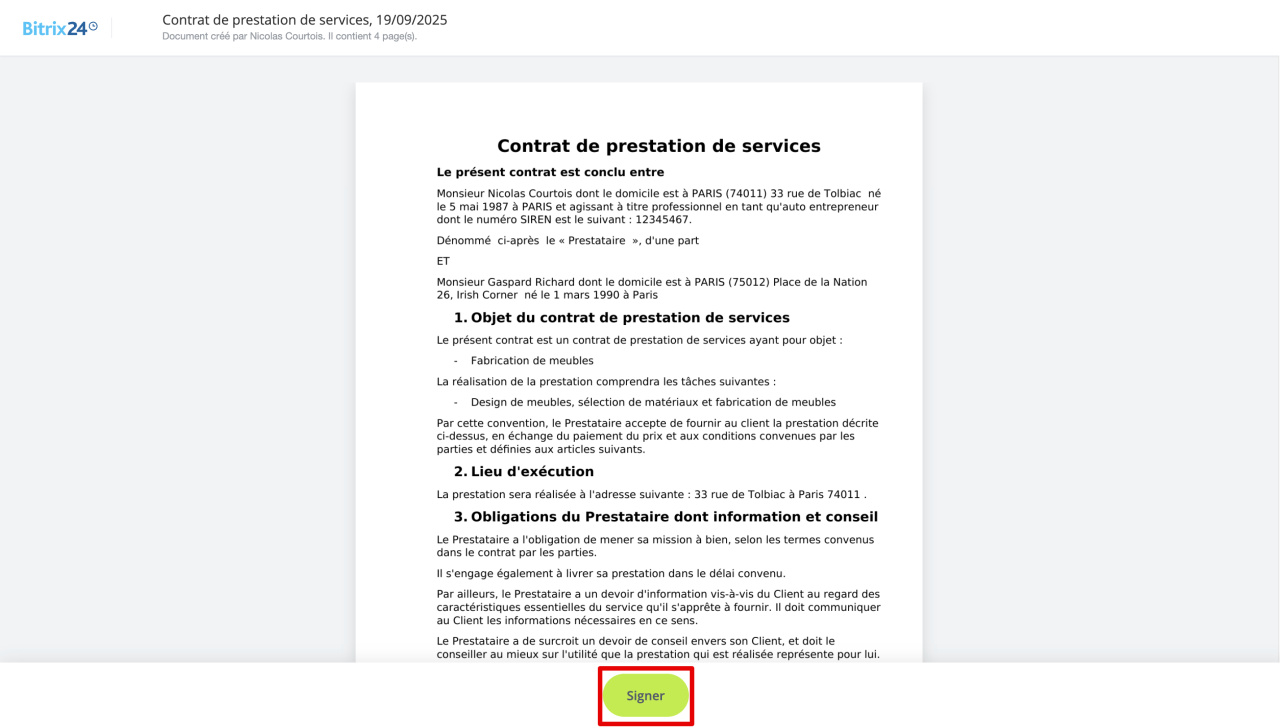 - Avec Bitrix24 Signature électronique, vous pouvez signer électroniquement des contrats et autres documents.