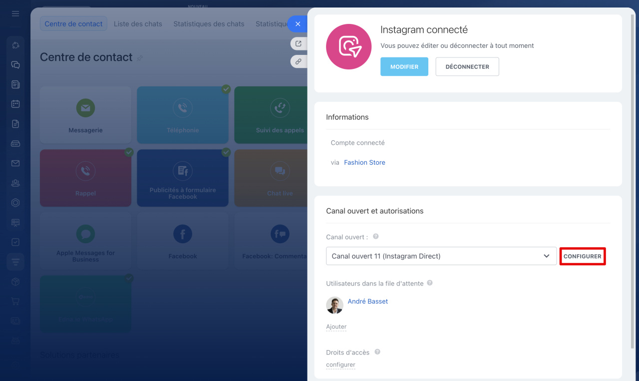 - Dans les paramètres du canal ouvert, cliquez sur Configurer.