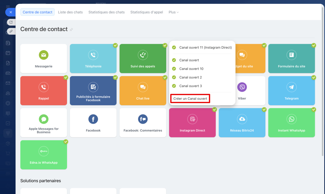 Vous pouvez également ajouter des canaux de communication via des applications disponibles sur Bitrix24 Market.