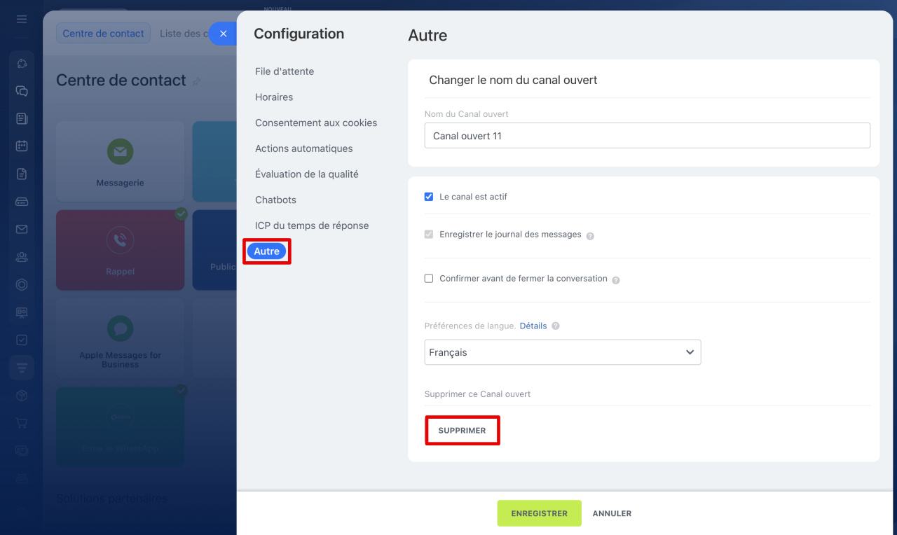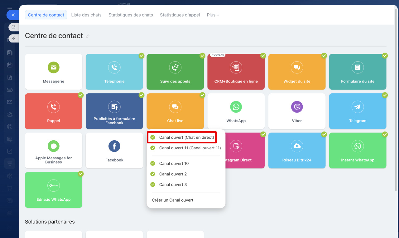 - Dans Centre de contact, ouvrez un canal et sélectionnez un canal ouvert.