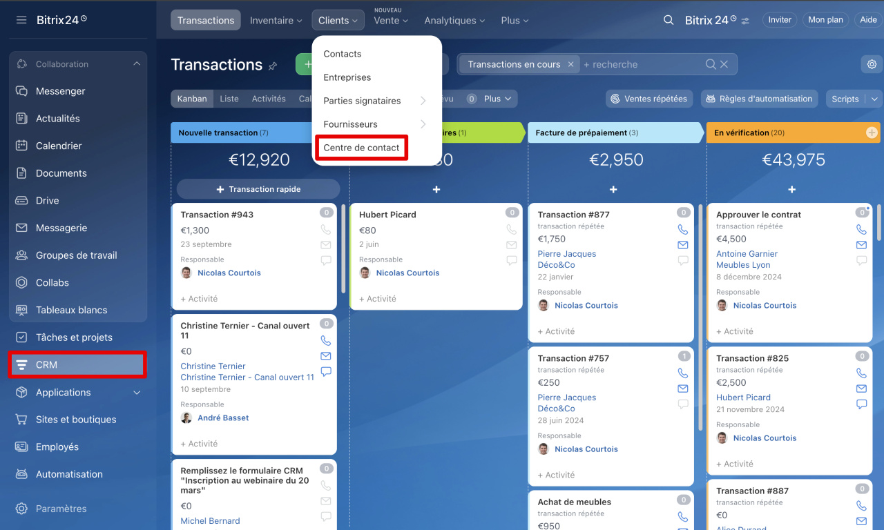 Dans la section Centre de contact, vous trouverez divers canaux pour communiquer avec vos clients : réseaux sociaux, messageries, e-mails et téléphonie. Toutes les conversations sont centralisées dans Bitrix24, où elles peuvent être réparties entre les employés. Ainsi, aucune demande n'est perdue et les clients reçoivent des réponses plus rapidement. Cet article répond aux questions fréquemment posées (FAQ) sur le centre de contact.