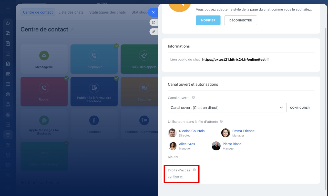 Comment configurer les droits d'accès dans le centre de contact pour différents employés