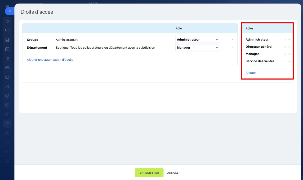 - Directeur général - mêmes droits, mais sans accès aux paramètres.