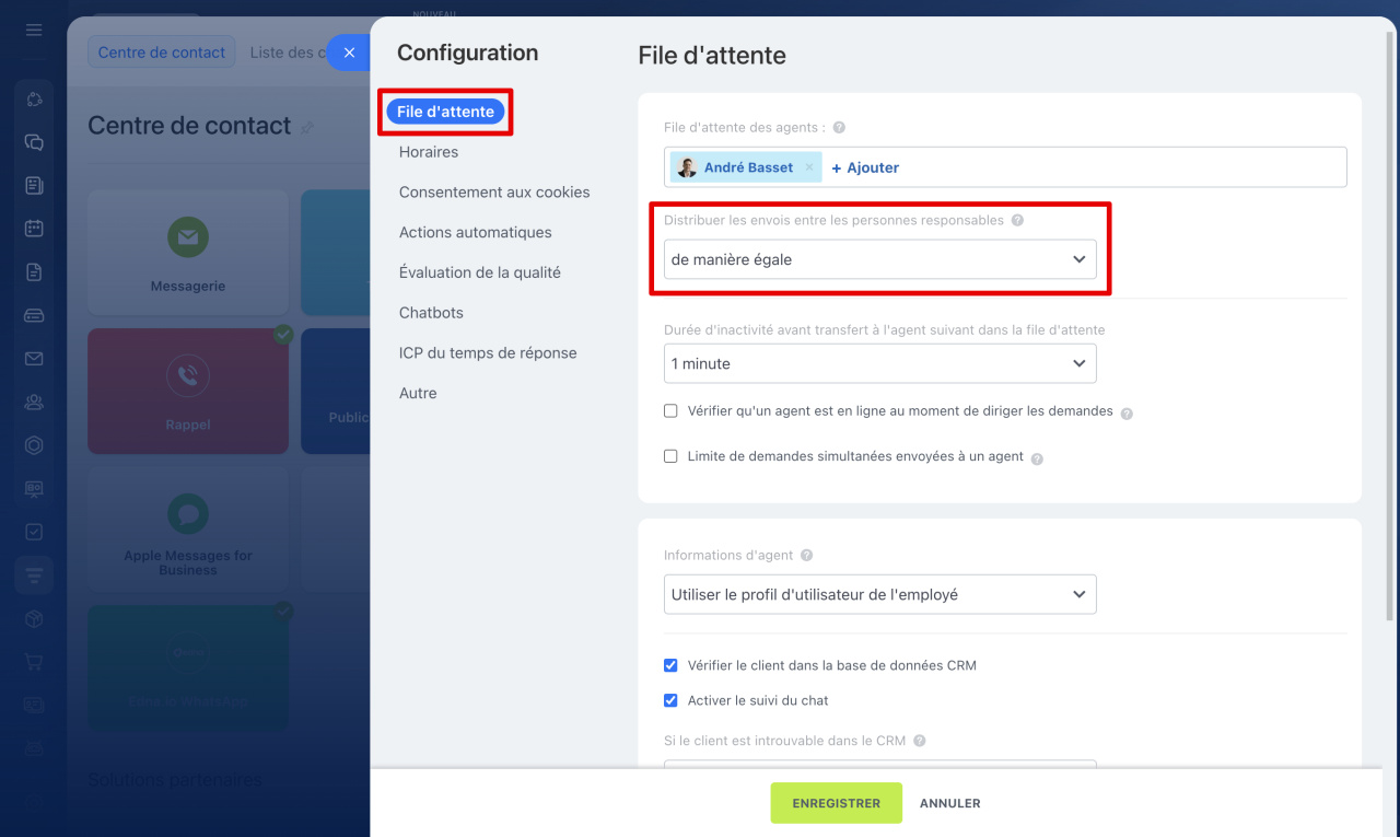 Pour les méthodes de distribution De manière égale et Exactement comme mis en file d'attente, vous pouvez limiter manuellement le nombre de dialogues par agent. Pour cela :