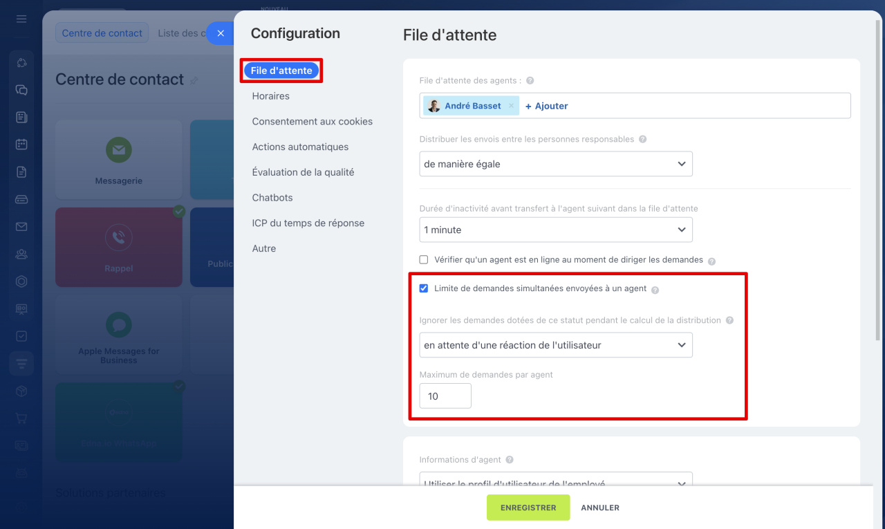 - Cochez la case Limite de demandes simultanées envoyées à un agent .