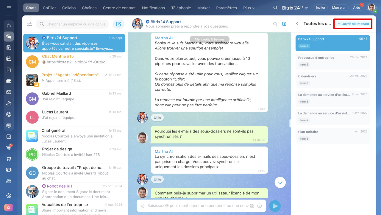 Comment ouvrir plusieurs chats avec le support Bitrix24
