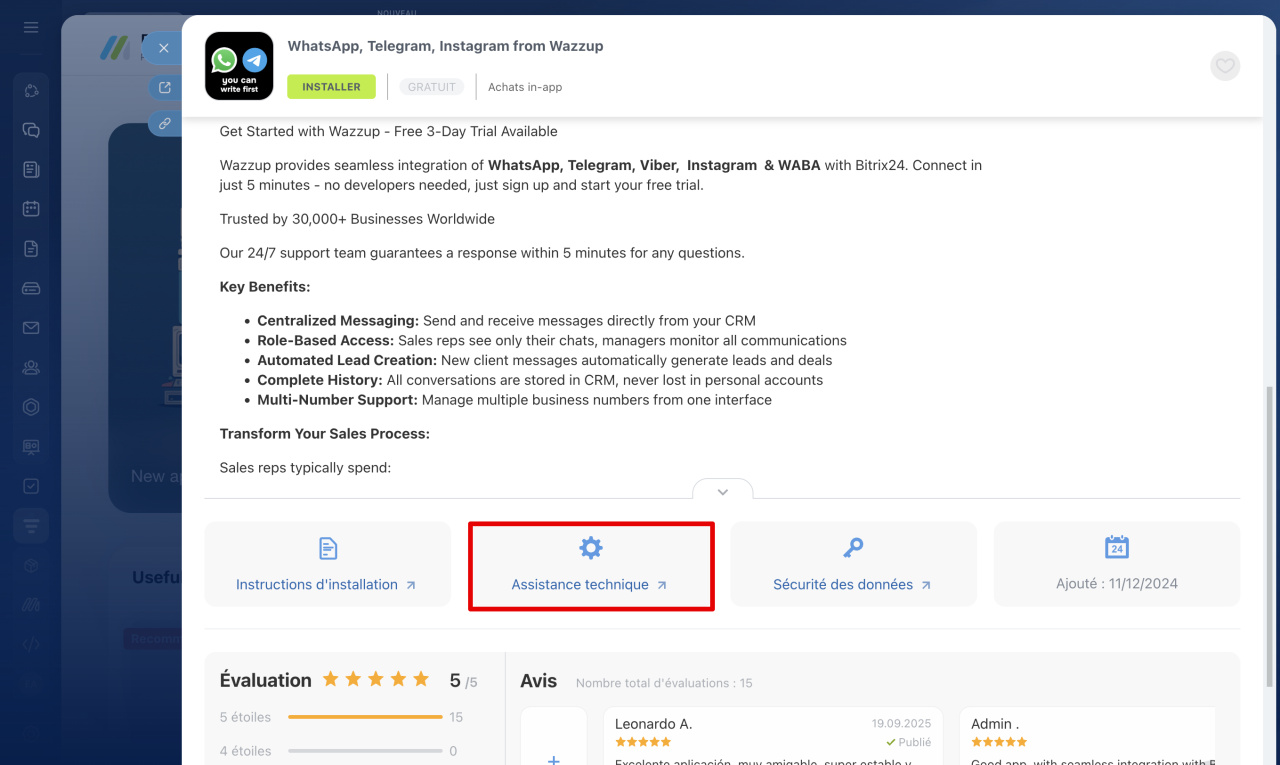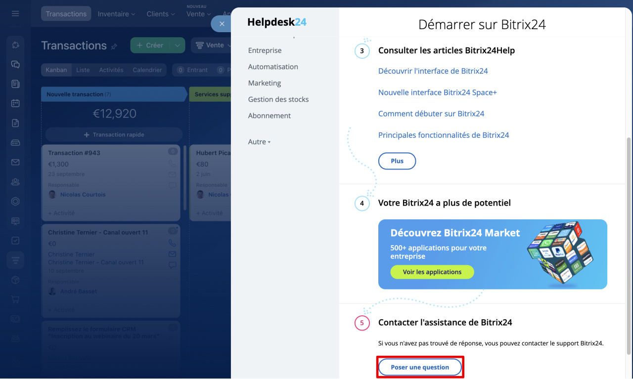 - où s'adresser si une application du Bitrix24 Market présente un dysfonctionnement.