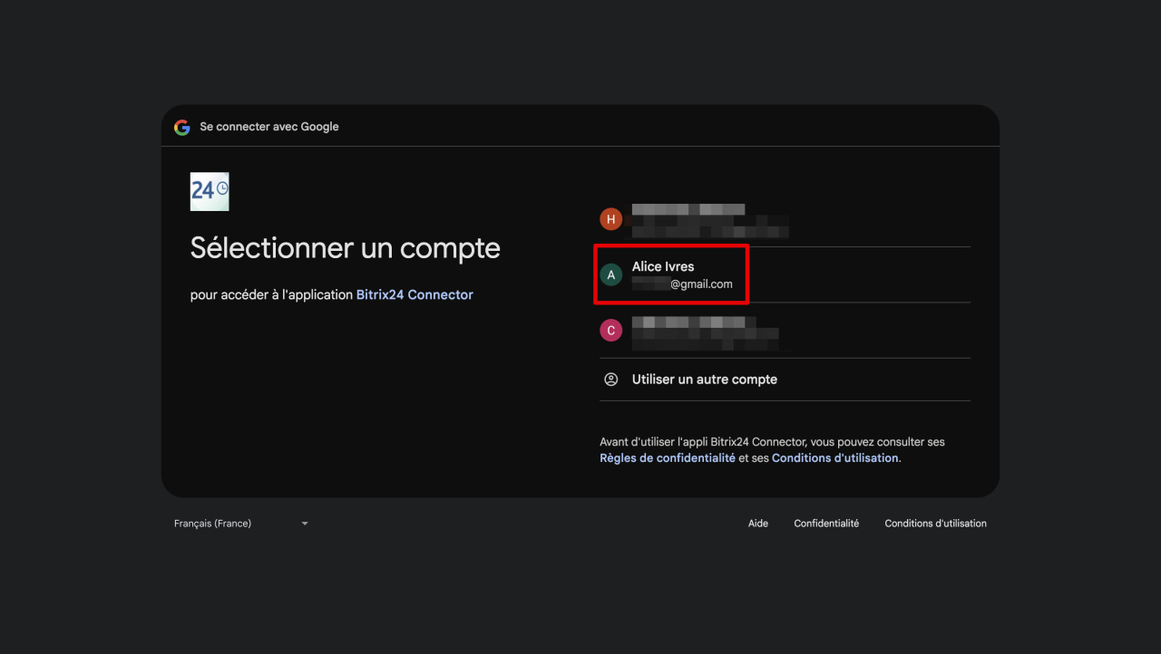 - Connectez-vous au compte souhaité et autorisez l'application Bitrix24 Connector à y accéder.