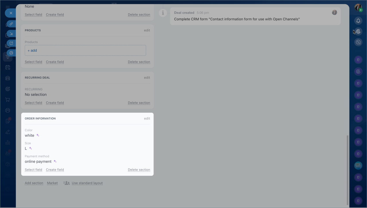 Remplir les champs du formulaire CRM. CoPilot remplit automatiquement les champs vides du formulaire avec les données issues du chat. Ces champs sont marqués d'une icône spéciale