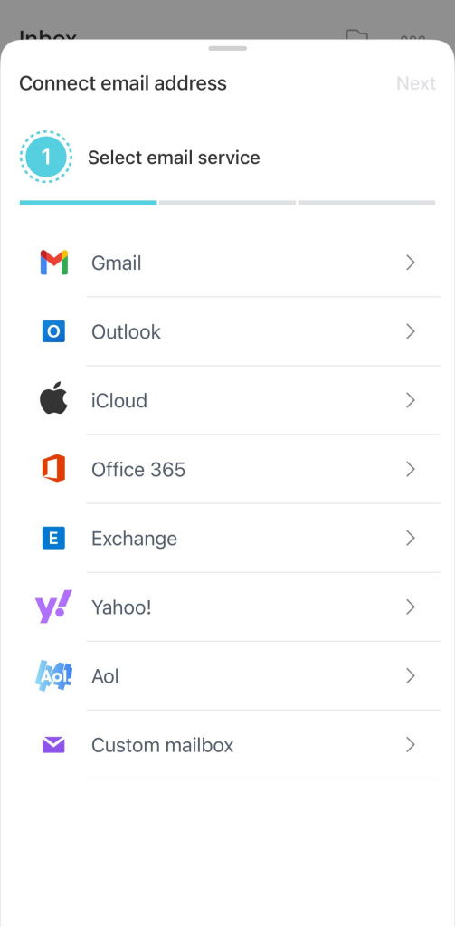 - Sélectionnez le service de messagerie que vous souhaitez connecter.
