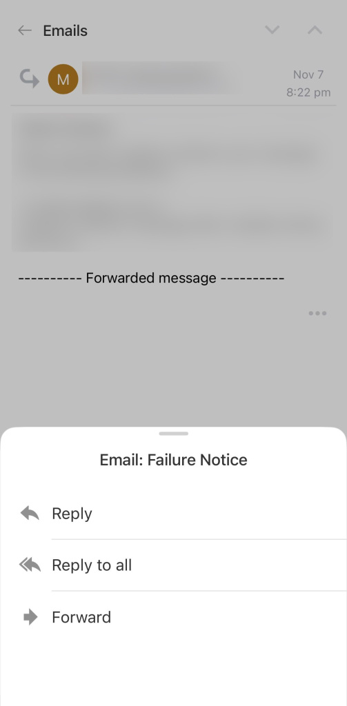 Répondre ou transférer. Ouvrez un e-mail et choisissez une action - Répondre ou Transférer. Par exemple, si un client envoie un contrat, vous pouvez transférer l'e-mail à l'équipe juridique pour révision.