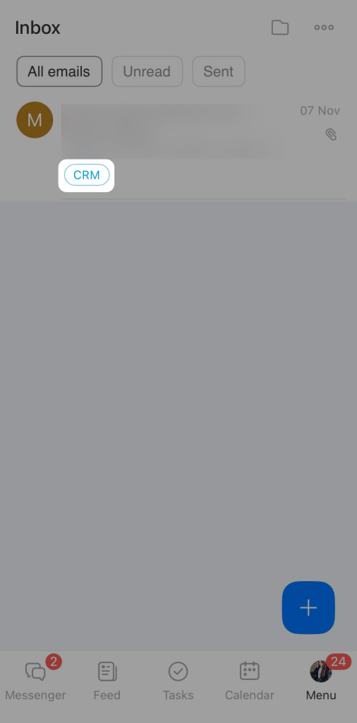 Touchez et maintenez l'e-mail souhaité, puis sélectionnez une action. Par exemple, ajoutez-le au CRM. Les e-mails liés au CRM afficheront une étiquette CRM, vous permettant d'accéder rapidement au formulaire associé.