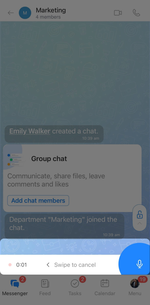 - Appuyez et maintenez l'icône du microphone pour enregistrer un message vocal.