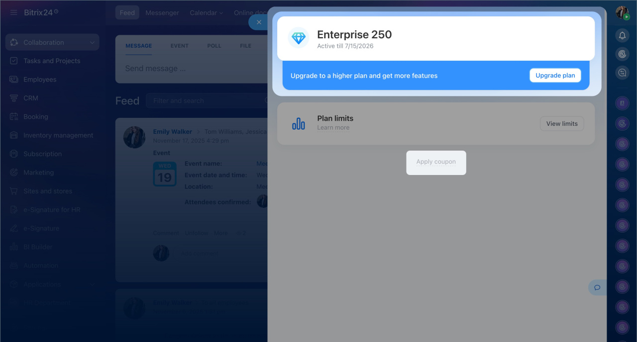 La section Abonnement de Bitrix24 a été mise à jour. Elle permet de :