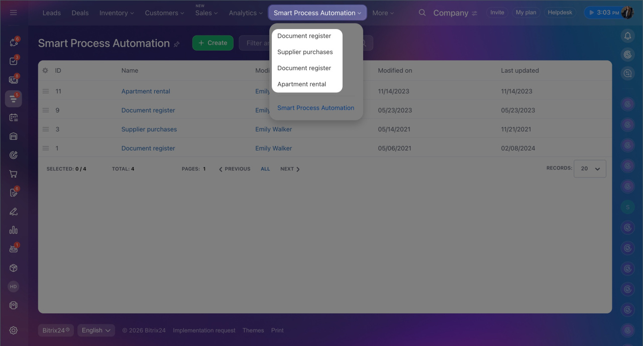 - Accédez à CRM > Plus > Processus intelligents et sélectionnez le processus intelligent souhaité.