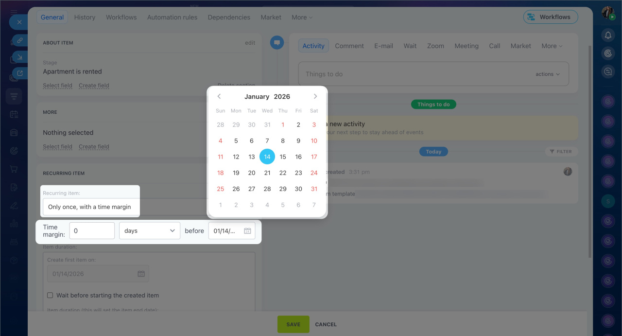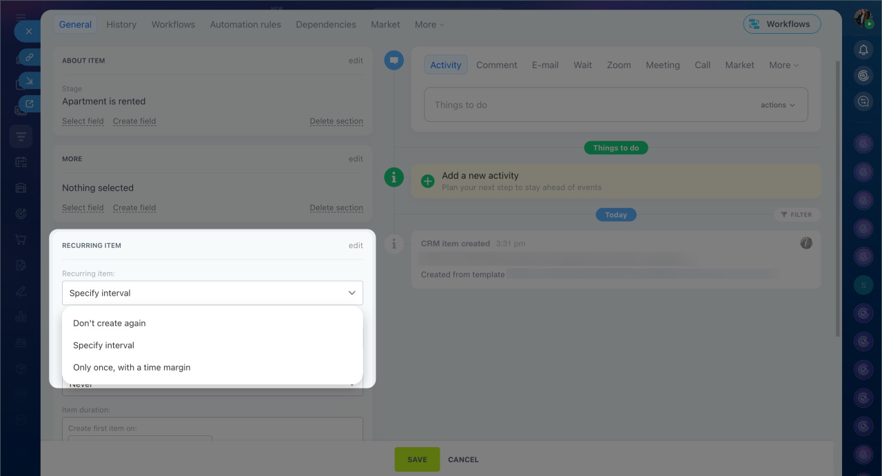 Définissez à quelle fréquence Bitrix24 doit créer de nouveaux éléments après celui que vous avez créé manuellement.